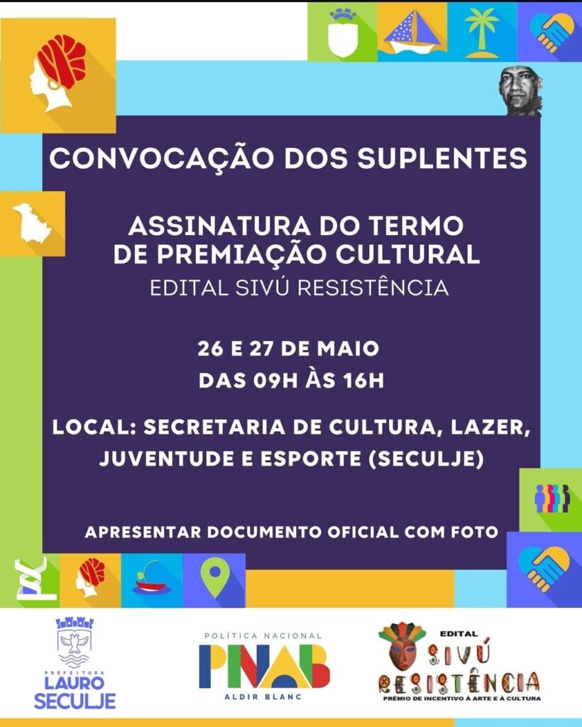 PREFEITURA DE LAURO DE FREITAS CONVOCA OS SUPLENTES PARA ASSINATURA DO TERMO DE PREMIAÇÃO CULTURAL (EDITAL Nº 001/2025 SIVÚ – RESISTÊNCIA)