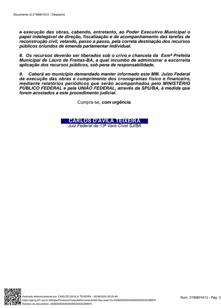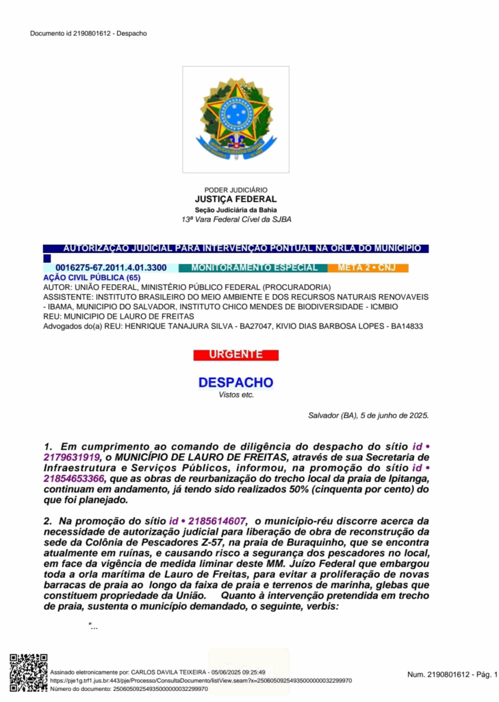 “A Prefeita DÉBORA RÉGIS reuniu-se com o juiz federal Carlos Davila, da 13a Vara da Justiça Federal da Bahia e conseguiu liberação da Obra de restauração da Colônia dos Pescadores Z58 de Buraquinho.