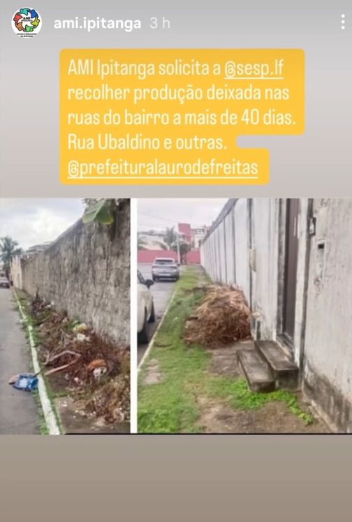 Resíduos permanecem nas ruas do bairro há mais de 40 dias e aguardam remoção pela Prefeitura.